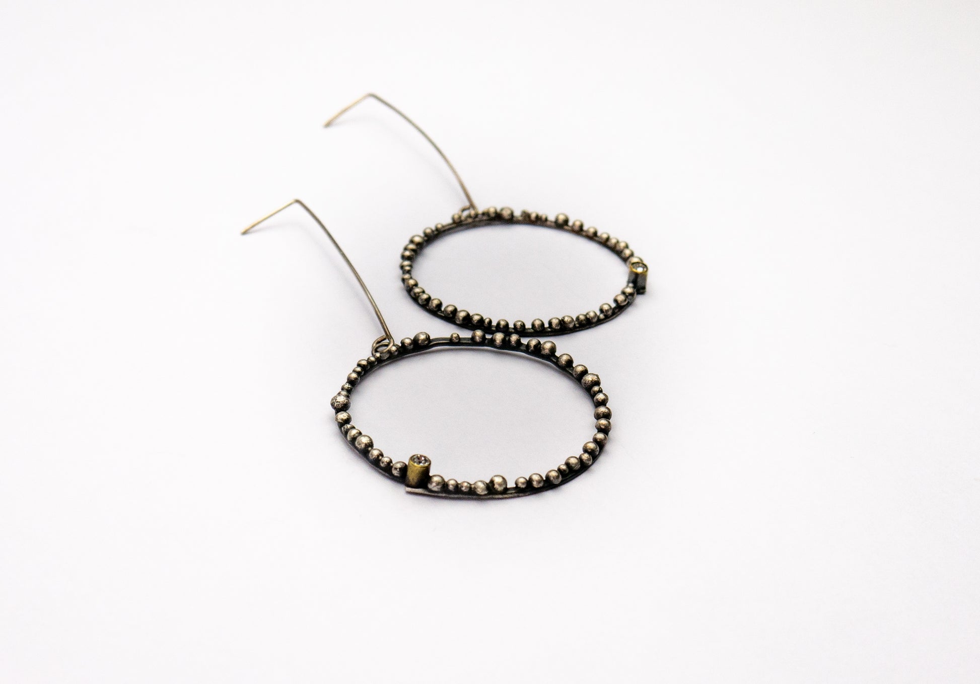 Traditional silversmithing techniques and tools are used to create this pair of earrings.