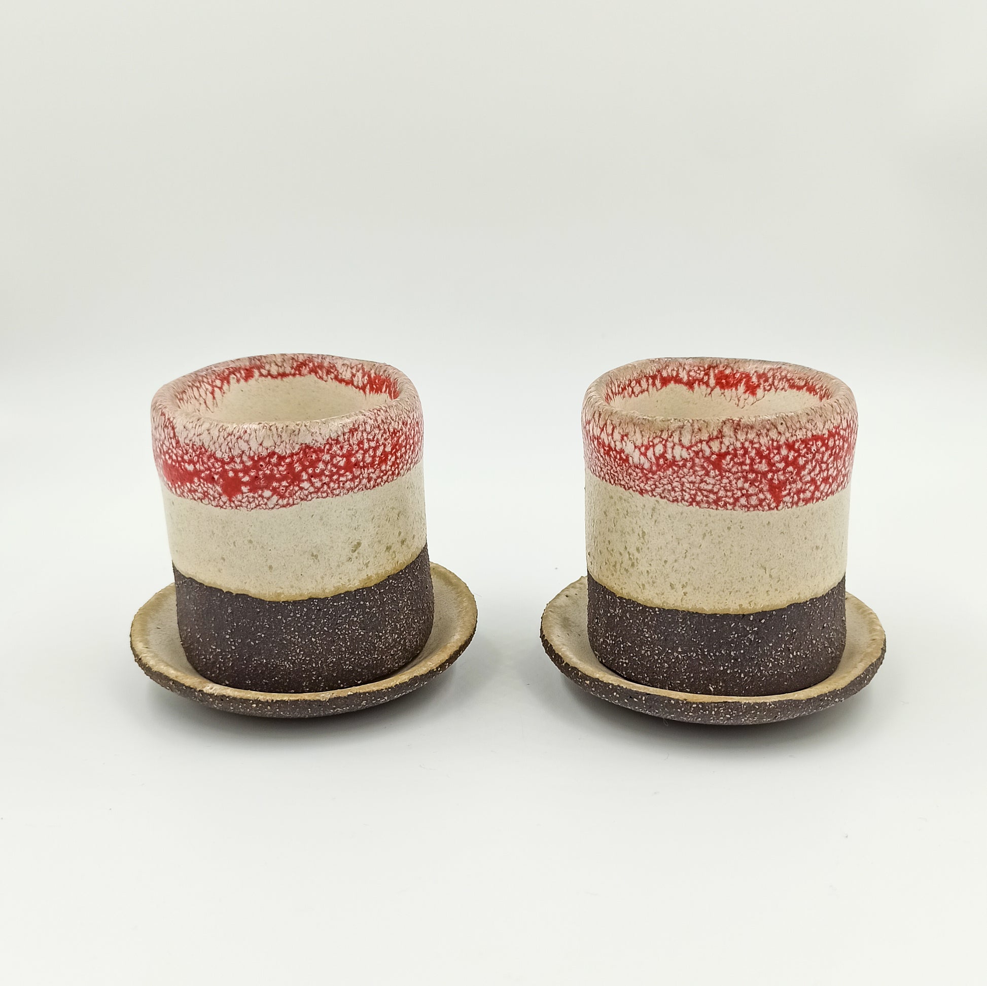 Handbuilt ceramic espresso cup. It is made from grey stoneware clay, fired twice in a high temperature kiln (up to 1240oC). For the final result I've used stain oxides and clear glaze. Due to its handmade nature it is totally unique.