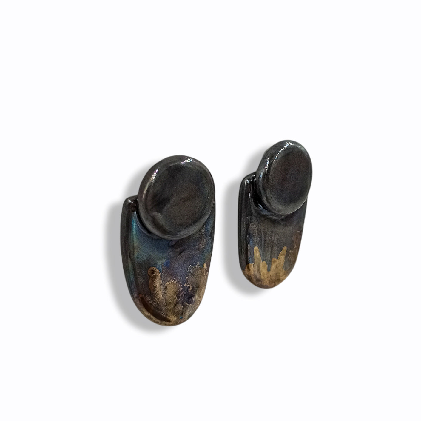 A unique and very chic pair of porcelain earrings. Porcelain has been fired three times in a high temperature kiln (up to 1240oC and up to 760oC for mirror effect and gold luster). For the final result I've used clear glaze, gold and mirror effect luster.