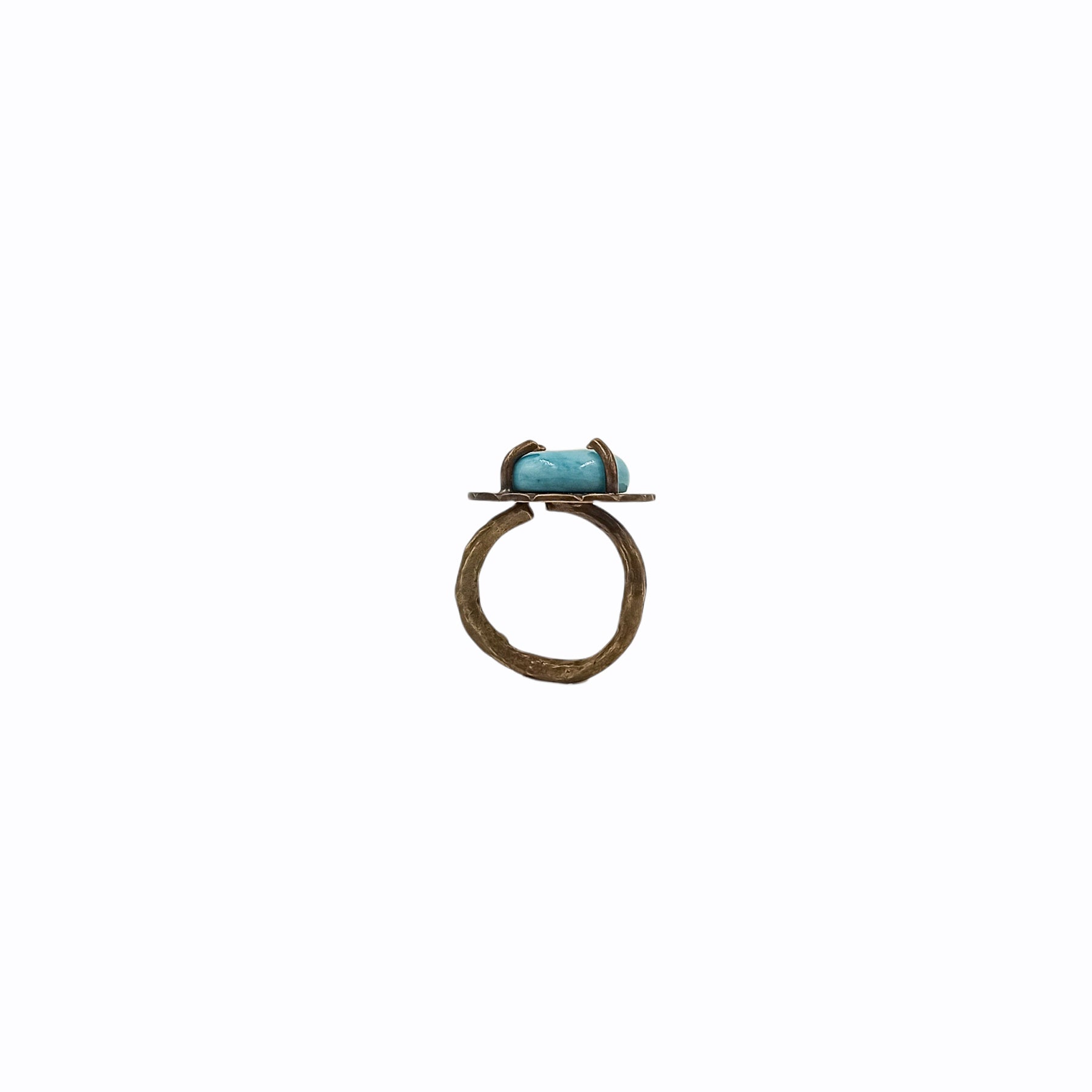 An eyecatching unique ring. Prong setting has been used to hold in place the porcelain part. Porcelain has been twice in kiln at 1000 and 1240o C. For the final result I've used stain and clear glaze.