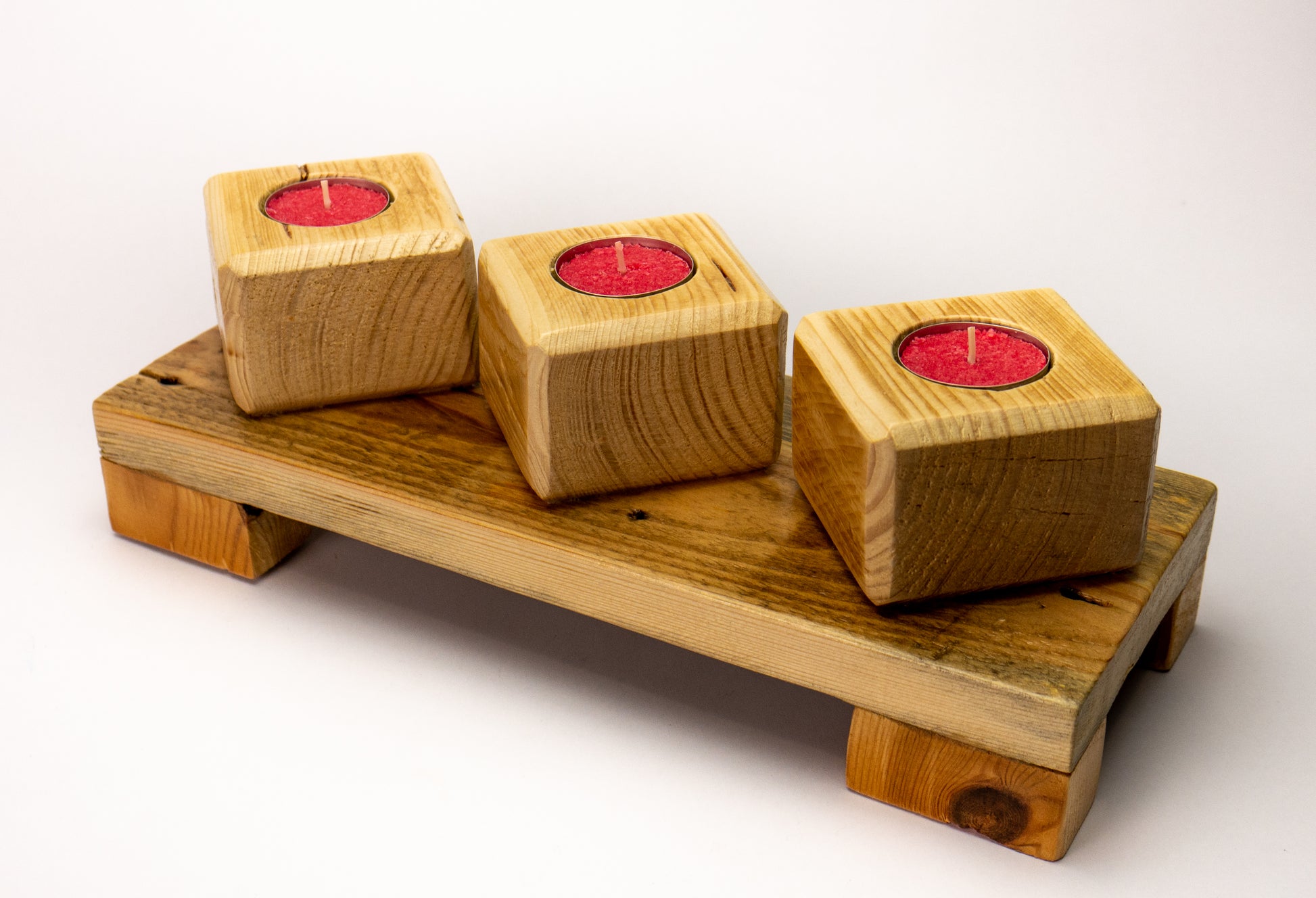 Wooden Candle Cube Holder. Recycled Wood Candle Holder