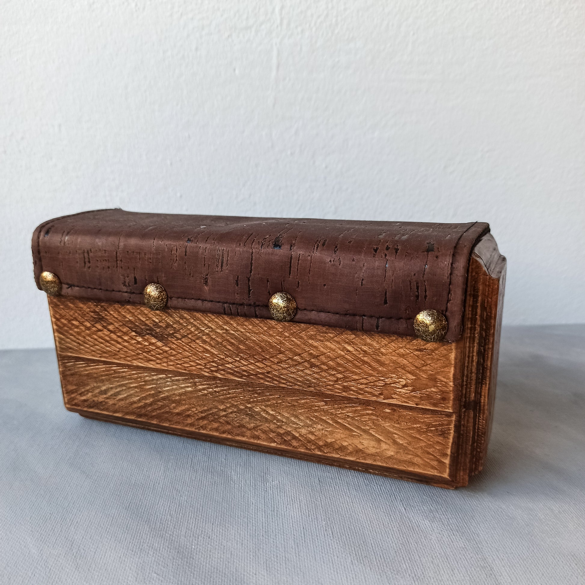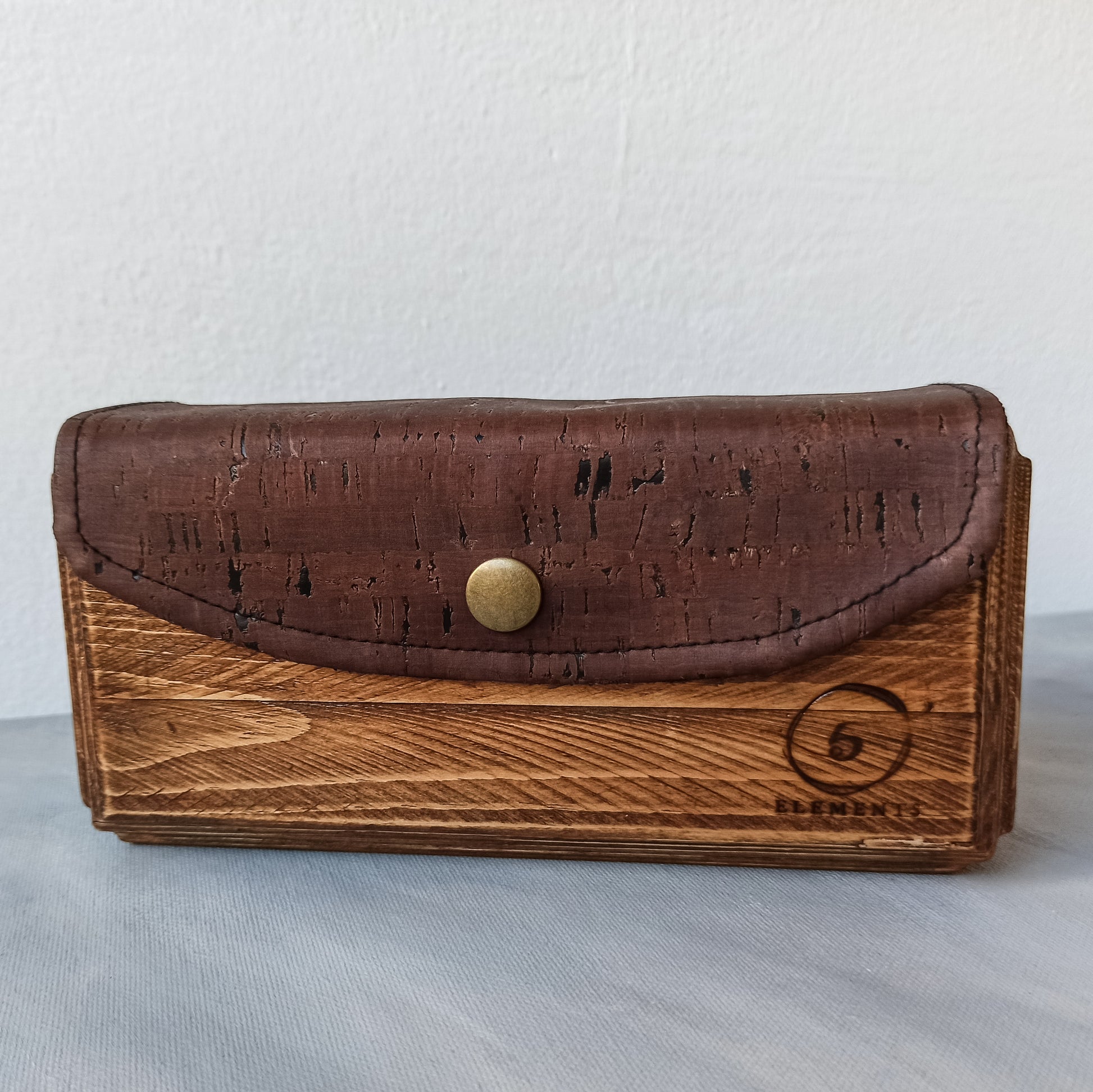 Wooden handmade clutch bag with brown cork leather - Eco friendly